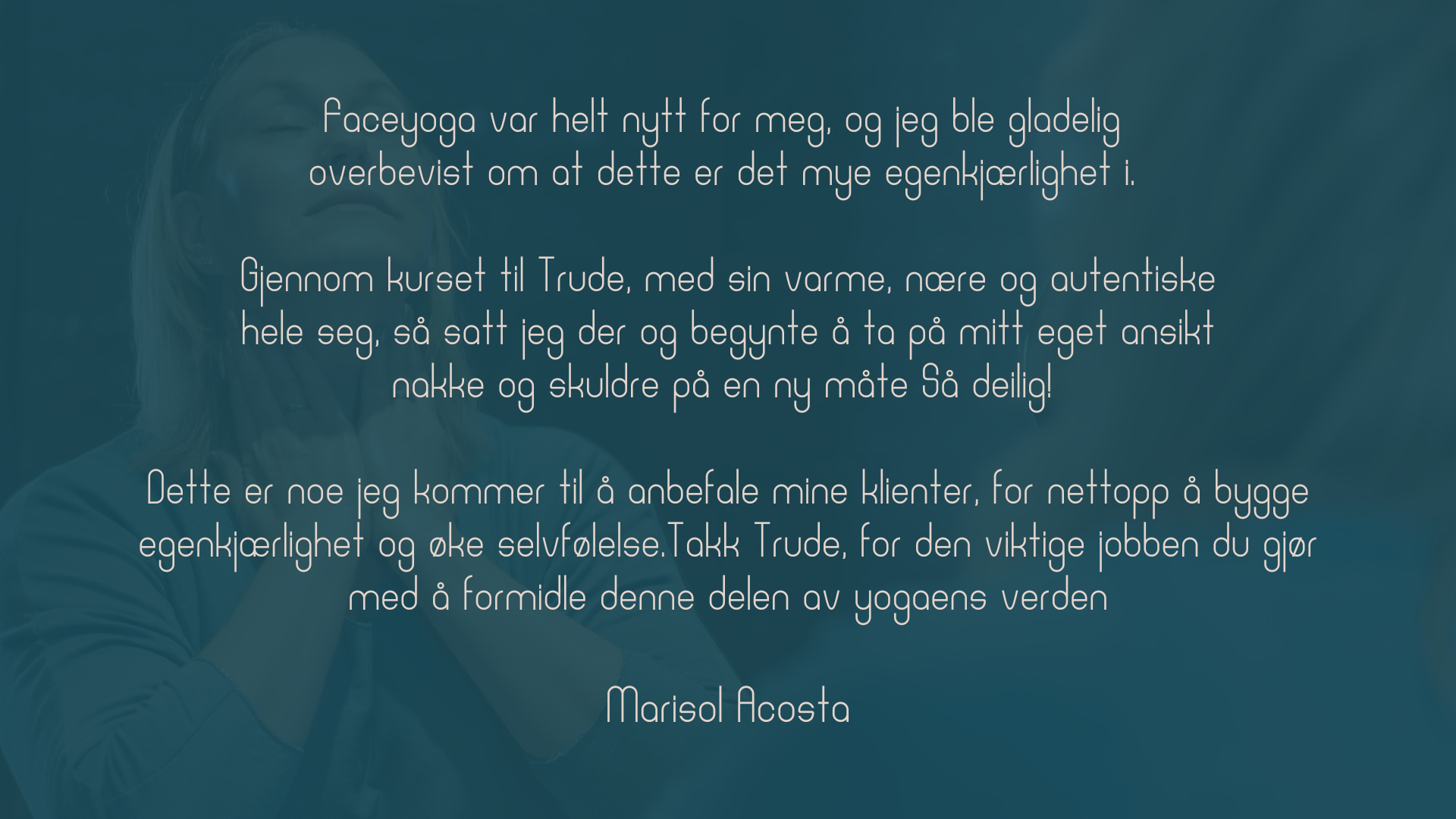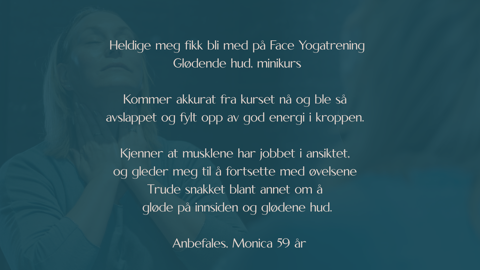 Nå drømmer jeg om å kunne hjelpe deg med å oppdage kraften med Face Yoga. Slik at du kan skape en bedre helse og hverdag for deg selv.